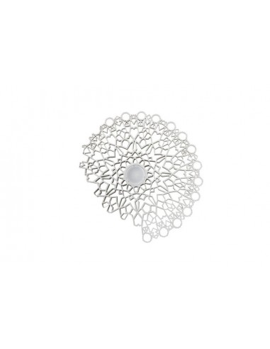 Come il nome suggerisce, Notredame è ispirata alle linee e alle forme tipiche dei rosoni gotici, il cui stile è stato adattato al gusto moderno creando così un elemento d'arredo funzionale e decorativo. Attraverso l'alternarsi perfetto di pieni e vuoti nella struttura in tecnopolimero, disponibile nei colori bianco o oro, la luce evidenzia ogni singola geometria della lampada conferendole quindi un carattere incisivo e d'impatto. Oltre alla versione a parete, Notredame è realizzata anche nei modelli a sospensione e a soffitto.