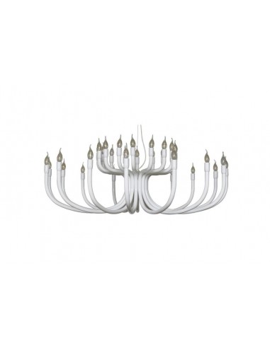 La collezione Snoob include due lampadari di dimensioni differenti, a 8 o 16 bracci, entrambi disponibili nei colori bianco e nero.