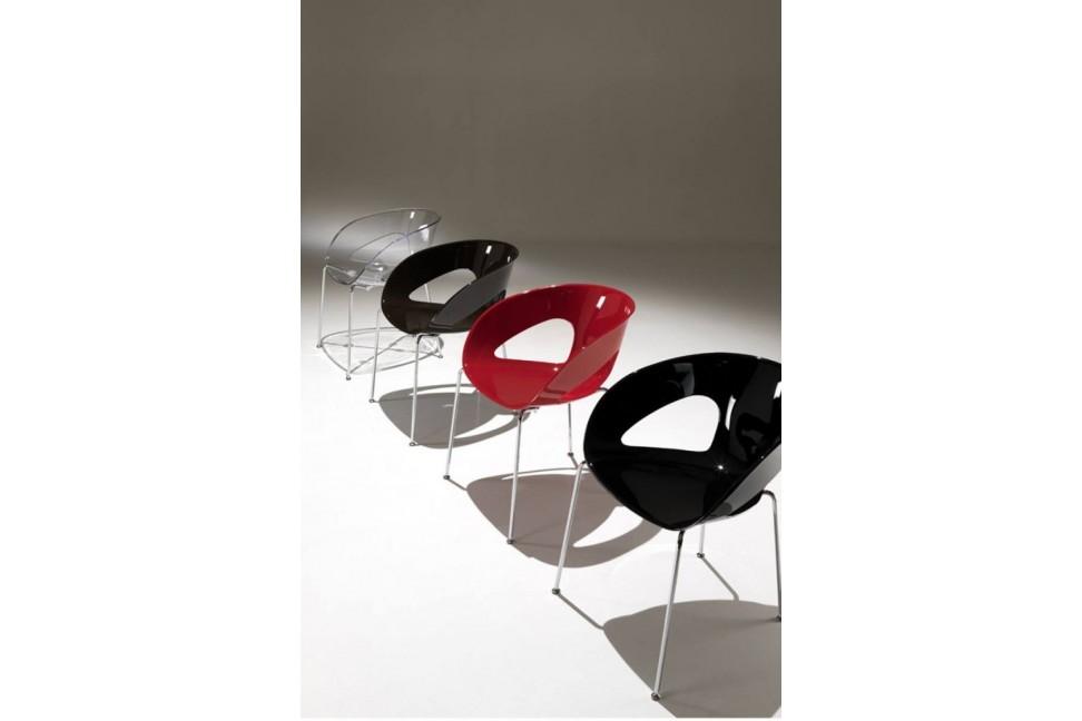 Krizia è una collezione vivace dalle linee inconfondibili: moderna e dinamica la sedia Krizia è perfetta per arredare uffici, ristoranti, bar e ambienti domestici. Queste divertenti e originali sedute fanno parte dell'apprezzata collezione di arredi di design firmata Kastel, azienda italiana specializzata nella realizzazione di sedie per la casa e per l'ambiente lavorativo.La sedia Krizia è caratterizzata da forme ampie e avvolgenti, la scocca è realizzata in policarbonato colorato, con gambe in metallo verniciato alluminio o cromato, o in faggio verniciato. Kastel realizza la scocca in quattro diversi colori e nell'elegante versione trasparente.