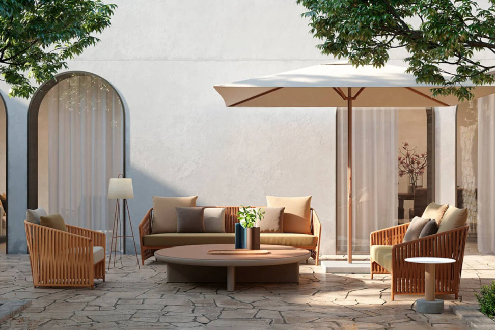 Forme tondeggianti e proporzioni perfette caratterizzano la collezione Bitta Lounge di Rodolfo Dordoni realizzata dall'azienda Kettal.