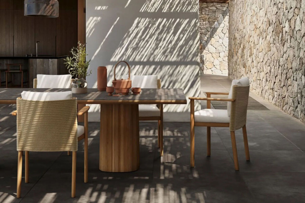 La poltroncina Giro di Kettal, disegnata dall'architetto belga Vincent Van Duysen, è una seduta compatta e avvolgente che grazie a linee pulite e materiali tattili si integra con facilità tra indoor e outdoor.