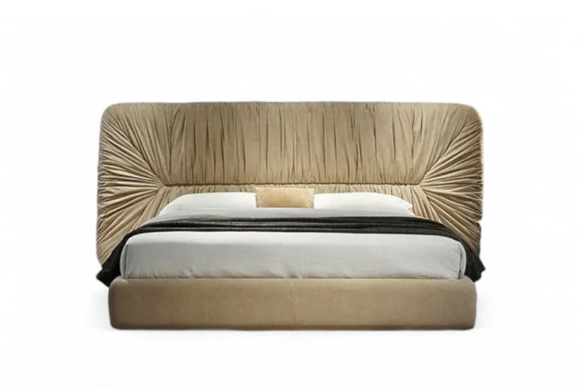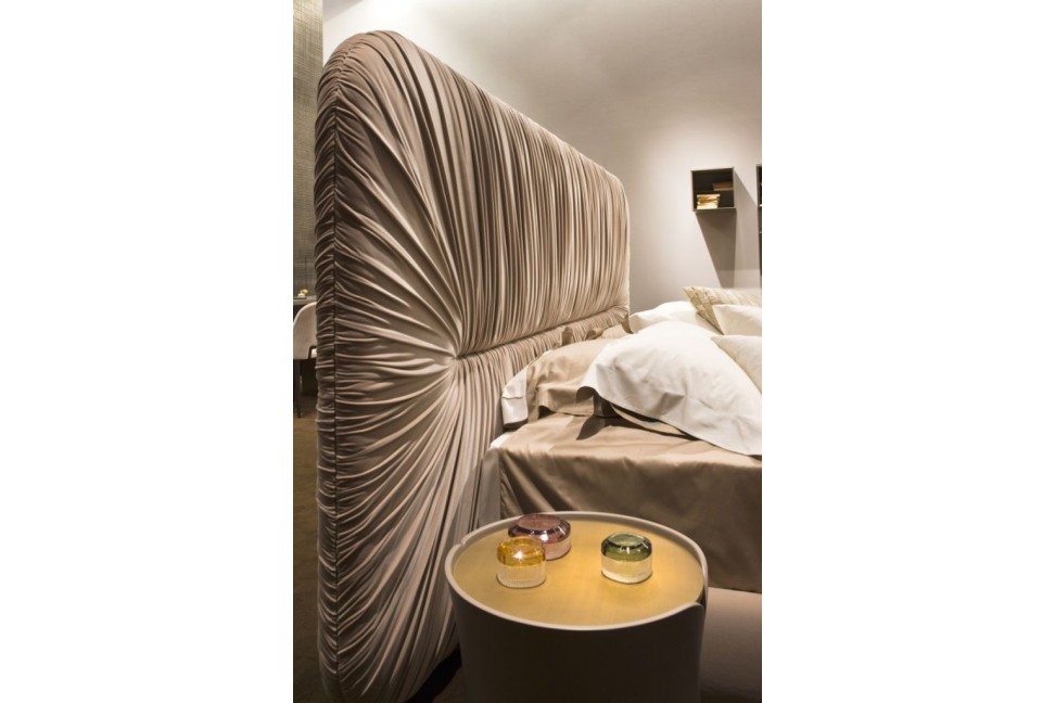 Progettato dallo studio Bartoli Design, il letto Drapè fa parte dell'omonima collezione di imbottiti proposta dal marchio italiano Laurameroni. Questo letto deve il suo nome al motivo che impreziosisce la testata: un drappeggio magistralmente curato, disponibile in pelle o in velluto, che conferisce un tocco estremamente elegante e raffinato alla testata dalle dimensioni importanti. È possibile scegliere di avere il drappeggio solo sul lato frontale della testata o su entrambi i lati, rendendo il letto Drapè perfetto anche per essere posizionato al centro della stanza.Laurameroni