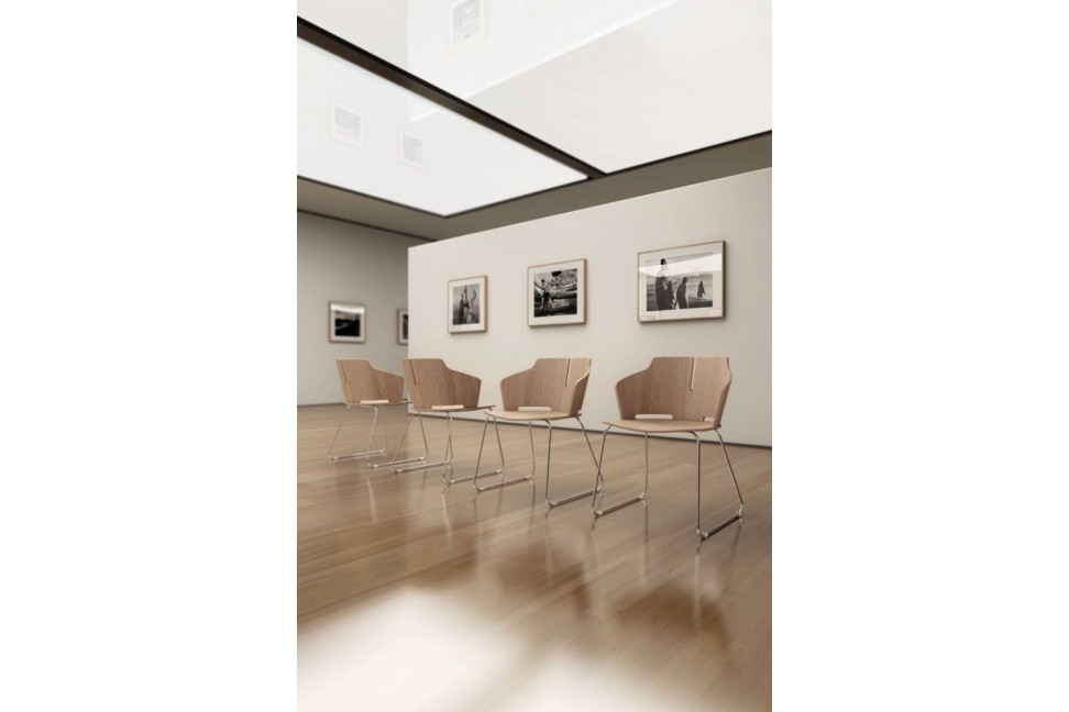 Prima è la collezione di sedute dalle forme originali e avvolgenti, presentata dall'azienda italiana Luxy, famosa nel mondo per la qualità e il design ricercato di ogni suo progetto.Disegnata dallo studio Favaretto & Partners, questa collezione ha come protagonista la pura bellezza del legno, un materiale caldo e versatile che riesce ad adattarsi bene a qualsiasi contesto. Un design particolare, unico nel suo genere identifica la sedia Prima, pensata per arredare ambienti contemporanei all'interno dei luoghi di lavoro. La scocca è realizzata in legno lamellare di rovere naturale, sbiancato o tinto giallo, amaranto, wengé e noce, la seduta e lo schienale possono essere anche imbottiti. La base è disponibile in diverse tipologie, con quattro gambe, a slitta e girevole, in metallo o legno.