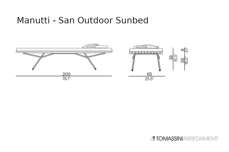 Il lettino outdoor San è disponibile nelle seguenti dimensioni: cm.65x200x38h.
