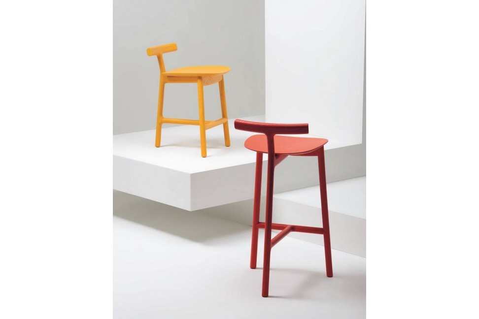 Lo sgabello Radice è caratterizzato da un piccolo schienale e da un design leggero e moderno. Mattiazzi realizza lo sgabello Radice in legno di rovere e frassino, ed offre la possibilità di rivestire la seduta con pelle oppure tessuto di vari colori.