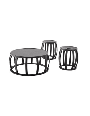 Il tavolino Loto è caratterizzato da un volume circolare che aumenta di dimensioni nella parte centrale della struttura, richiamando la forma di una botte.
