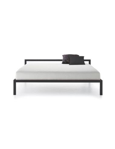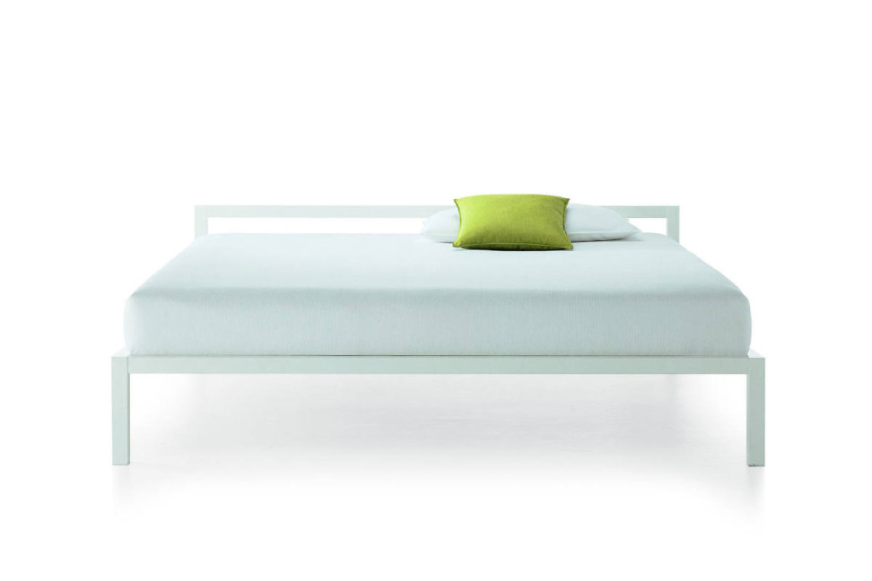 Aluminium è un letto dalla struttura in alluminio anodizzato naturale o brillantato che si può avere in più versioni: sommier, con testiera alta 57 cm, 78 cm con o senza pannello imbottito, a baldacchino con o senza imbottitura. La struttura con la testiera da 57 cm può essere laccata lucida nei colori: bianco, nero, rosso, grigio chiaro, arancione.