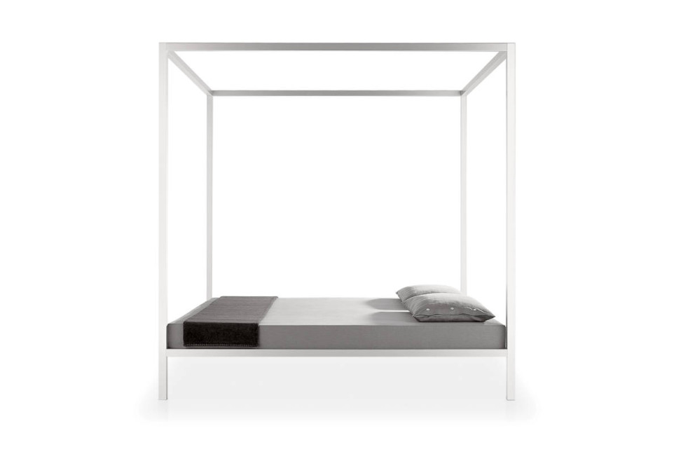 Il letto Aluminium è disponibile in diverse versioni (con o senza testiera, sommier, a baldacchino...), accomunate dalla struttura in alluminio anodizzato naturale (laccato o non) o brillantato.