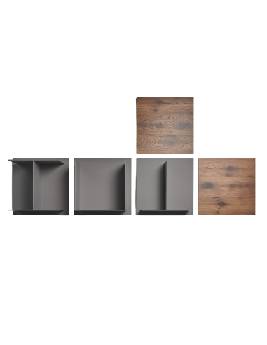 La libreria Square, materica e rigorosa, incarna la vera essenza della semplicità. Priva di elementi non funzionali, pur restando un pezzo di arredamento dal forte impatto visivo, la libreria Square fa dell'essenzialità il proprio punto di forza. Square è una libreria modulare, avente dei moduli a vista e moduli contenitore che raggiungono l'apice della loro versatilità grazie alla possibilità di poter essere ruotati, creando nuove forme di dialogo artistico tra i vari moduli e con l'ambiente circostante. I moduli della libreria Square sono composti di pannelli in fibra di legno a media densità con schienali in laminato Fenix, e due di questi possono essere realizzati nelle eleganti ma discrete versioni in legno, ottone, pietra e ferro nero.