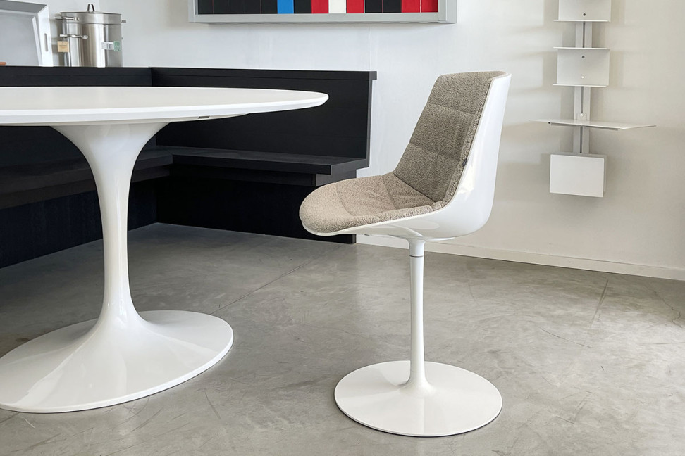 La sedia Flow, in offerta expo nel nostro showroom, è un elemento di arredo dotato di un forte impatto visivo grazie al contrasto tra la seduta imbottita e la scocca lucida. Questa sedia si presenta con base a forma di stelo e scocca di colore bianco. Nel prezzo è incluso un comodo pad imbottito rivestito in tessuto color grigio chiaro.