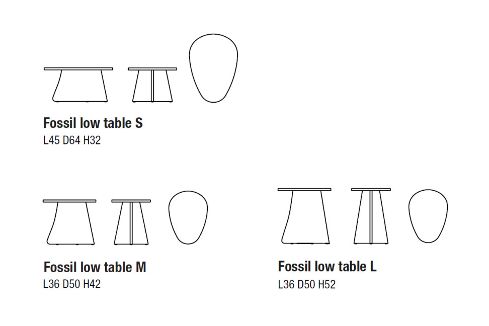 Il tavolino outdoor Fossil è disponibile in diverse dimensioni per adattarsi alle diverse esigenze degli ambienti. Le dimensioni disponibili includono 36x50x52h, 36x50x42h e 45x64x32h. Questa varietà di dimensioni consente di scegliere il tavolino che si adatta meglio allo spazio disponibile, offrendo la possibilità di creare composizioni personalizzate e di sfruttare al meglio ogni ambiente.