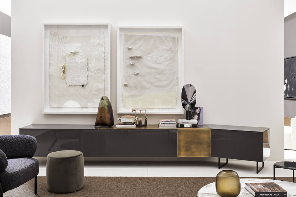 La linea di contenitori Ruben, di Parisio per Maridiani, è dotata di supporti per il fissaggio a muro, vantando così un'apparente leggerezza che deriva dal contrasto con lo spazio sottostante. Il contenitore Ruben si distingue per un design lineare e discreto, e sarà quindi in grado di adattarsi a qualsiasi tipo di ambiente living, anche grazie alla sua estrema versatilità. Ruben è infatti altamente personalizzabile in quanto la struttura in legno può avere una finitura lucida od opaca, può essere oppure rivestito in ottone bronzato e, per alcuni moduli, è prevista la possibilità di avere un rivestimento in marmo calacatta, carrara gioia, emperador, grey stone o marquinia. Queste raffinate finiture rendono Ruben un contenitore dal grande impatto visivo, rendendosi adatto anche alla zona living più sofisticata.