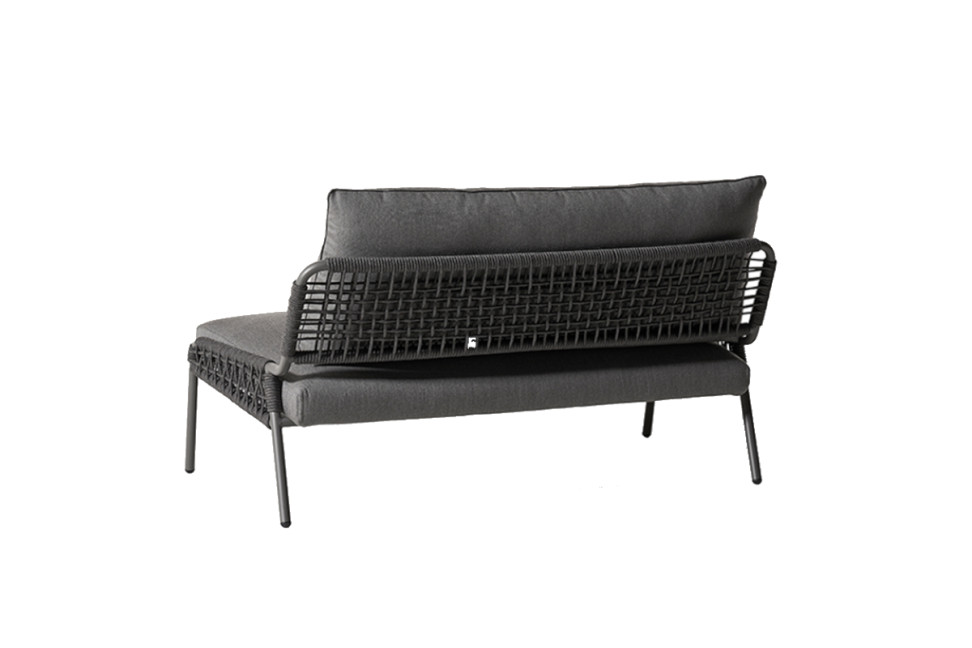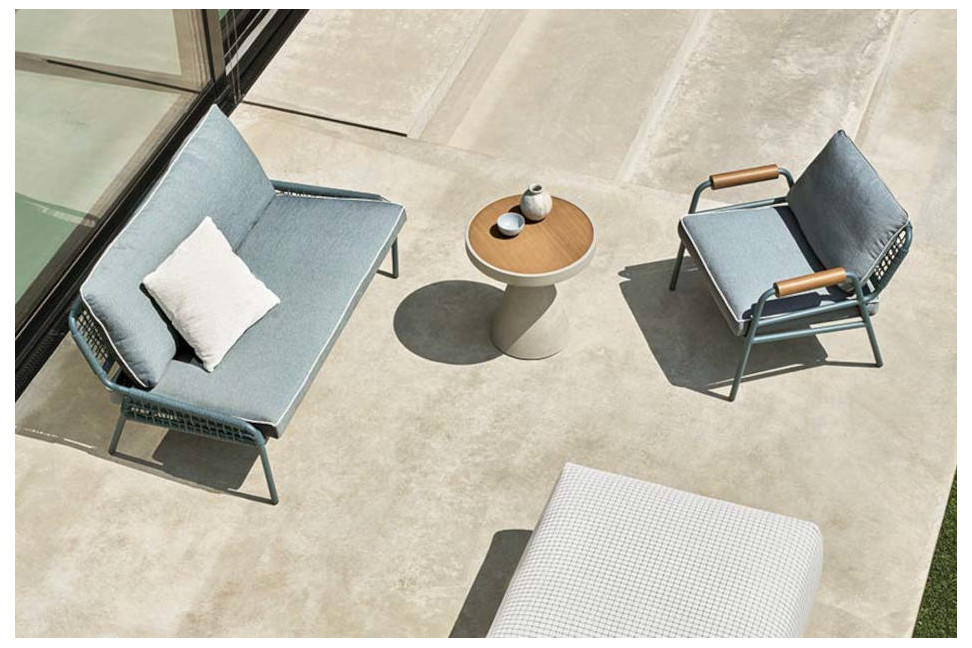Ciò che contraddistingue il divano Outdoor Zoe, siglato Andrea Parisio per Meridiani, è l'utilizzo della corda in polipropilene, sostenuta da una struttura in alluminio verniciato disponibile in quattro finiture: Chalk, Petrol, Elephant e Black. Zoe Open Air si presenta come un divano sofisticato e semplice allo stesso tempo, grazie alla sua seduta imbottita e all'elegante intreccio realizzato interamente a mano in due versioni.