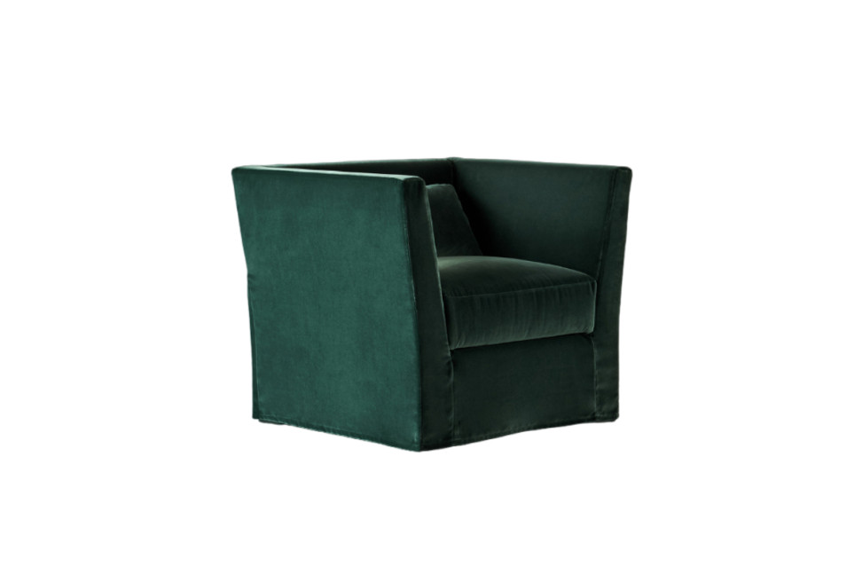La Poltrona Queen di Meridiani, siglata Andrea Parisio, è composta da struttura in legno con piedini in legno tinto chiaro, moka o grigio, imbottitura in poliuretano indeformabile e rivestimento protettivo in fibra poliestere, cuscini seduta in poliuretano indeformabile e piuma supportata e cuscini schienale in piuma supportata. La finitura sfoderabile in tessuto, fissa per la versione in pelle, prevede un rivestimento lungo.