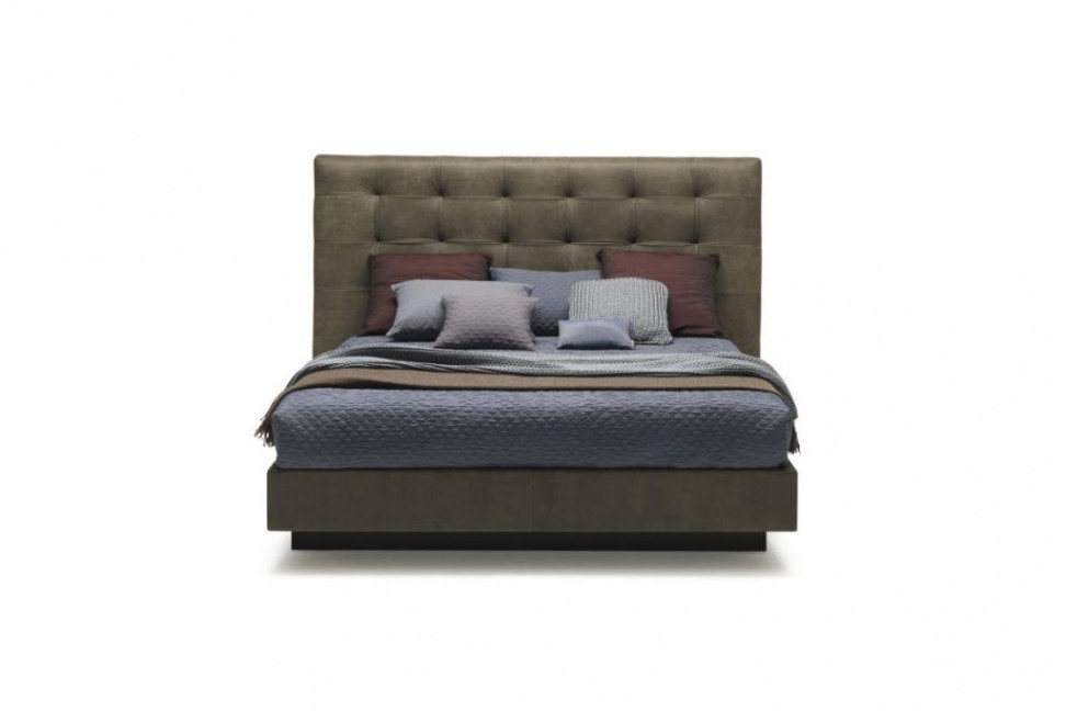 La sua imponente testata decorata con una sofisticata lavorazione a capitonné è stata disegnata da Ennio Arosio, storico collaboratore dell'azienda italiana, il quale è riuscito a realizzare un elemento d'arredo in grado di stupire senza eccedere. Frida risulta inoltre estremamente versatile, grazie alla possibilità di scegliere tra la versione con rete fissa o con contenitore, e di selezionare il rivestimento tra una vasta gamma di tessuti, pelli, eco-pelli e velluti.
