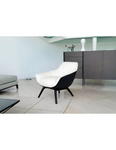 La poltrona Florentia, in offerta expo nel nostro showroom, è un complemento elegante e raffinato che saprà inserirsi perfettamente nel vostro living, arricchendolo di un tocco originale grazie al suo rivestimento bicolore in pelle bianco e nero, esaltato dalle gambe in rovere tinto nero.