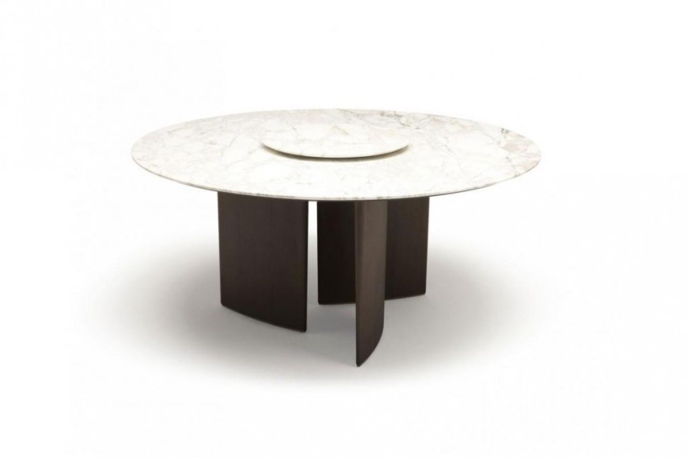 Ala è composto da un piano rotondo in marmo o semiovale in marmo o in vetro trasparente e da una base in legno naturale o laccato opaco. La versione con piano rotondo può essere arricchita da un vassoio girevole in marmo, disponibile in due dimensioni.