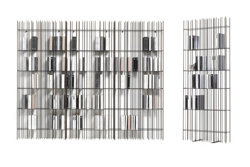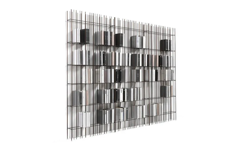 La libreria Metrica di Mogg nasce nel 2017 da un progetto di CTRLZAK, studio fondato da Thanos Zakopoulos e Katia Meneghini, come un intero sistema modulare di contenimento capace di trasformare una struttura essenziale in metallo verniciato in un vero e proprio elemento architettonico dinamico e moderno. Le bacchette verticali, distribuite a intervalli irregolari, generano un ritmo che richiama un linguaggio industriale reinterpretato in chiave domestica. La struttura della libreria Metrica non impone una forma chiusa, ma crea una griglia aperta dove pieni e vuoti si alternano in modo dinamico.