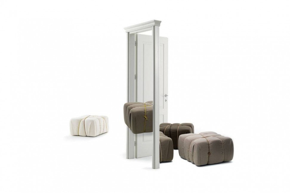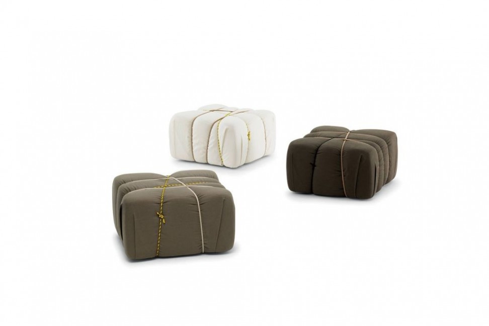 Il designer Marcantonio Raimondi Malerba ha realizzato un pouf curioso: un pacco che diventa una seduta imbottita e rivestita totalmente in lino, arricchita da corde colorate. E' possibile abbinare il pouf Che Pakko alla poltrona Contropakko, realizzata con le stesse caratteristiche.