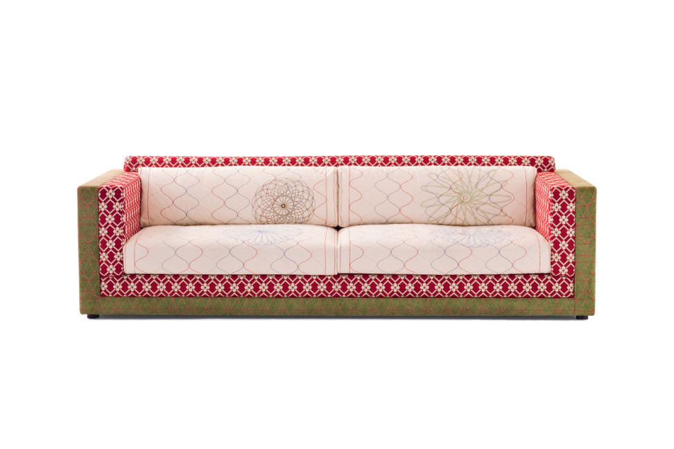 Il divano Karmakoma fa parte della collezione Sushi di Moroso, azienda leader del design made in Italy, opera creativa di Edward van Vliet. Simbologie orientali, decori floreali e tecnogriglie sono le caratteristiche di questo divano ricco di una forte identità.