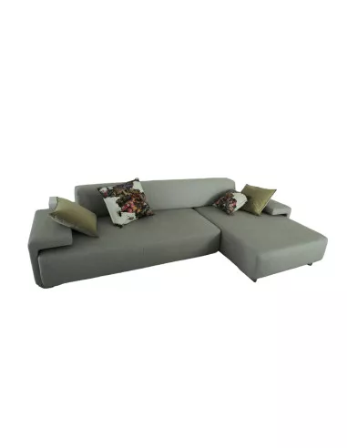 Il divano Lowland in offerta expo ha una chaise longue (versione dx), ed è rivestito in tessuto color tortora.
