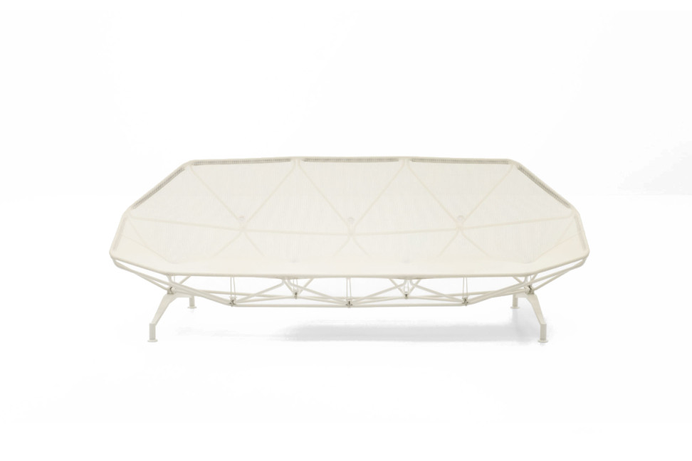 Il divano da esterno Alma è disegnato da Francisco Gomez Paz per il noto brand Paola Lenti ed è costituito da un tessuto Rete che si fissa alla struttura tramite bottoni in materiale plastico e corde in filato Rope, che valorizzano le geometrie del design. Le sedute possono essere utilizzate anche senza materassini. Sono disponibili diversi accessori come il trapuntino per divani a due o tre posti, con imbottitura in fibra di poliestere e rivestimento fisso in Whim o Moss. Cuscino cm.140×140, diviso in quattro settori, con bordo a saponetta oppure cuscino cm.100×100, con bordo a fascia, sfoderabile ed in fine trapuntino cm.110×150, diviso in tre fasce, con rivestimento fisso in Maglia Rasata o Maglia Moss. I cuscini e trapuntini sono compatibili anche con le sedute della collezione Aqua.