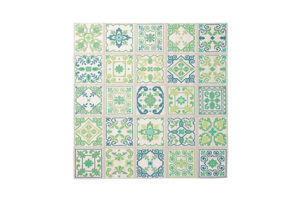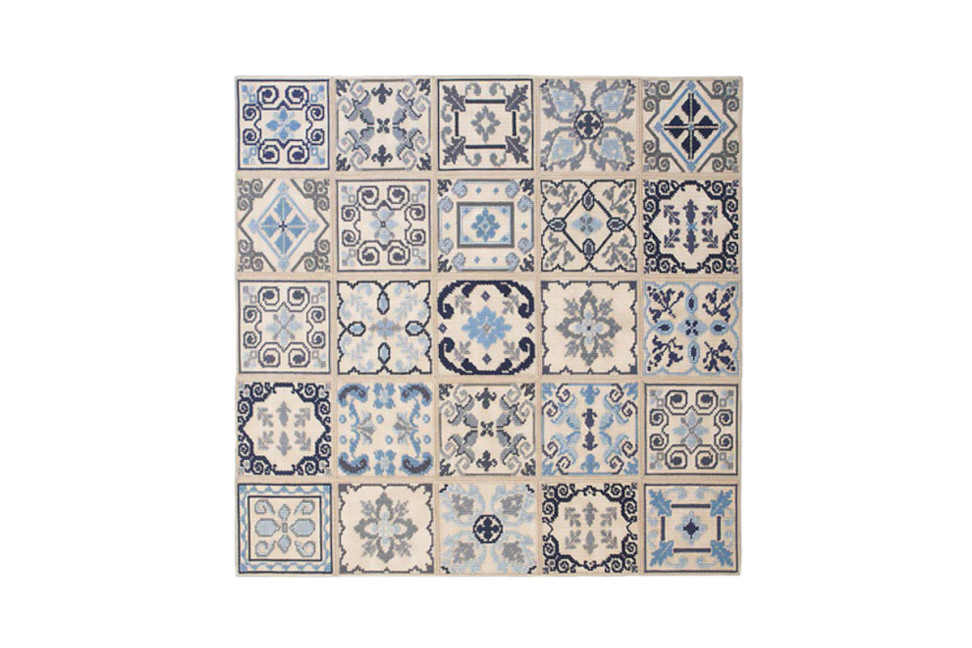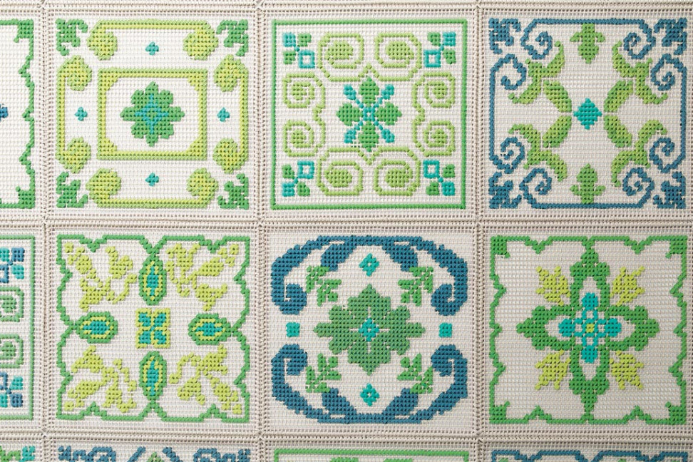 Per realizzare il tappeto Donna Costanza, la stilista siciliana Marella Ferrera si è ispirata alle decorazioni dipinte sulle antiche maioliche siciliane, creando così un pezzo unico che si inserisce perfettamente nella collezione dei tappeti Paola Lenti. Donna Costanza è un tappeto modulare per interni ed esterni, ottenuto accostando tanti elementi quadrati di dimensioni cm 50x50, ricamati a mano ognuno con una decorazione diversa. Il decoro viene realizzato usando una traccia piatta a tinta unita o bicolore in filo Rope. Paola Lenti realizza questo tappeto nelle dimensioni cm. 250x250.