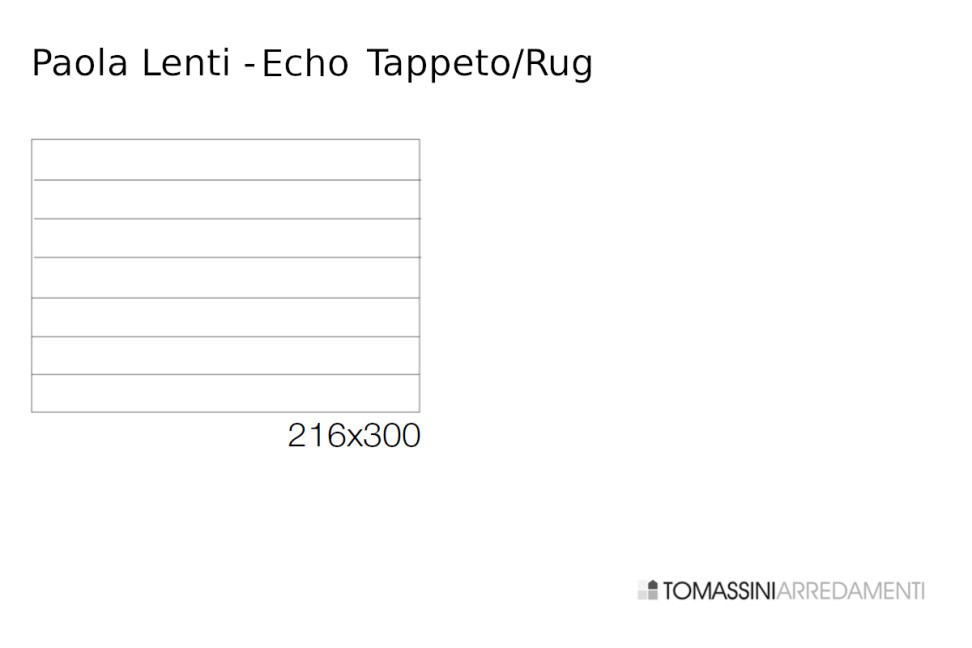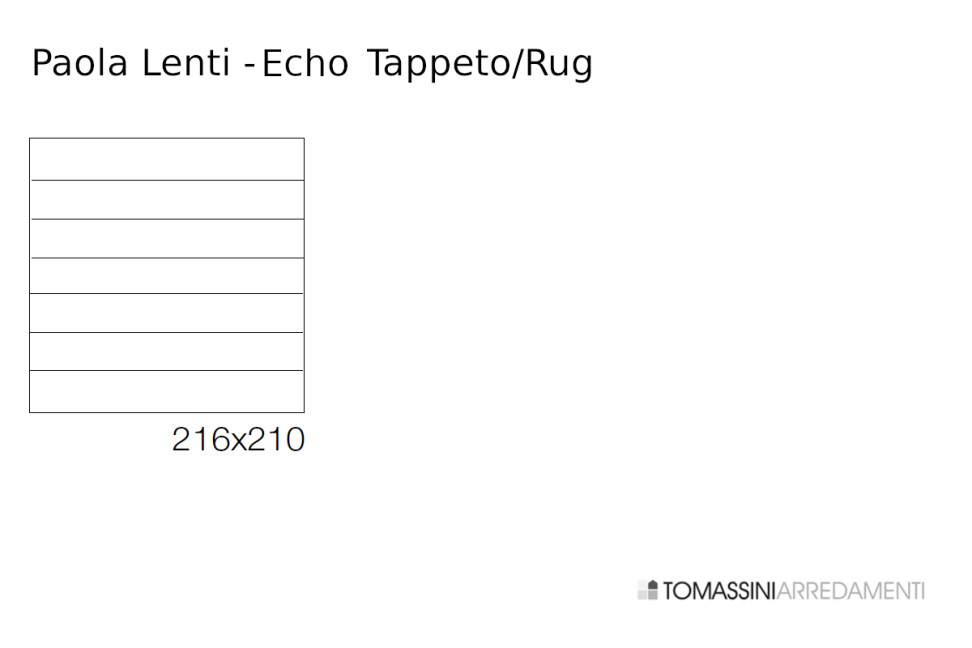 Echo è un tappeto modulare, adatto sia per interni che per esterni, progettato da CRS di Paola Lenti. Questo modello come altri tappeti Paola Lenti è composto da strisce di tessuto larghe circa cm.30, cucite in senso longitudinale, alternate a corde dello stesso materiale. Le strisce vengono realizzate intrecciando stringhe e trecce, seguendo combinazioni di colore già definite. I lati alle estremità delle strisce sono rifiniti con un bordo realizzato nel colore principale del tappeto. Si può scegliere un solo abbinamento di colore per le strisce e un solo colore per le corde.