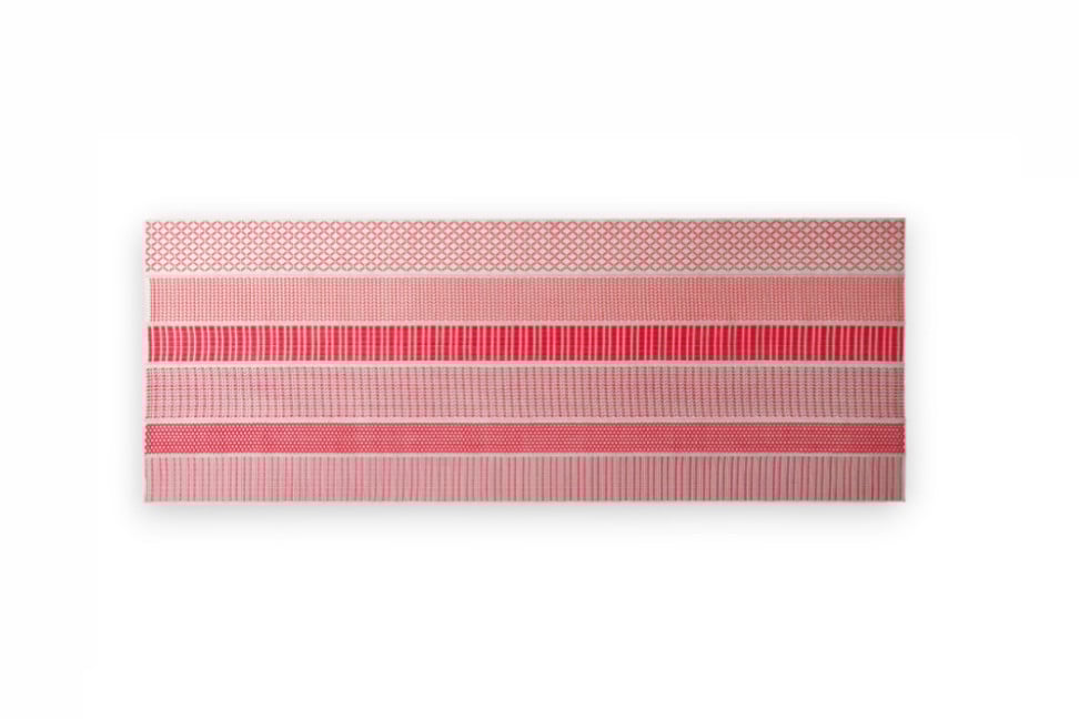 Composto da tre fasce che possono avere una larghezza di cm 15, 25 o 35 il tappeto Grafismi è disponibile in due dimensioni standard: