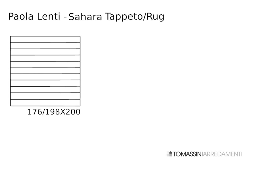 Sahara di CRS Paola Lenti è un tappeto modulare creato con trecce cucite in lunghezza e adatto per esterni e interni, come altri tappeti Paola Lenti. Ogni treccia ha una frangia alle estremità, sempre posizionata sul lato corto del tappeto. È possibile scegliere un solo colore. La larghezza delle trecce varia da 16 a 18 cm, quindi la misura del lato corto cambia in base al numero di trecce.