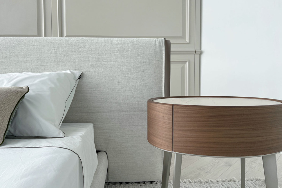 Il comodino Kelly è parte della collezione ideata da Emmanuel Gallina per Poliform e rappresenta l'incontro perfetto tra design moderno e praticità.