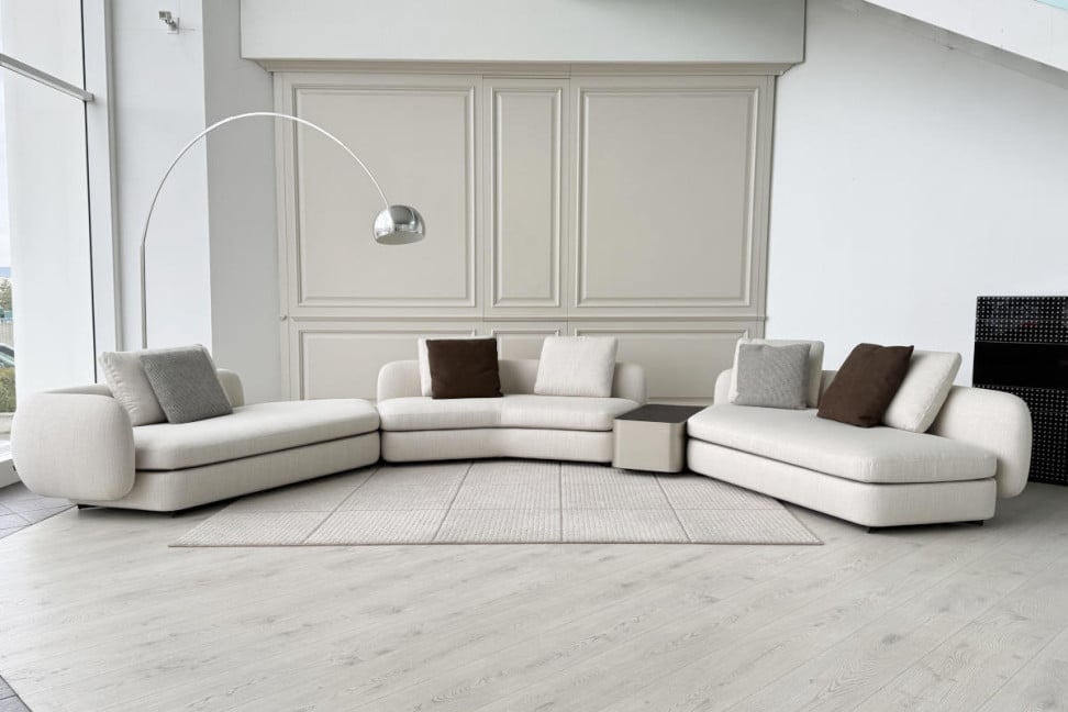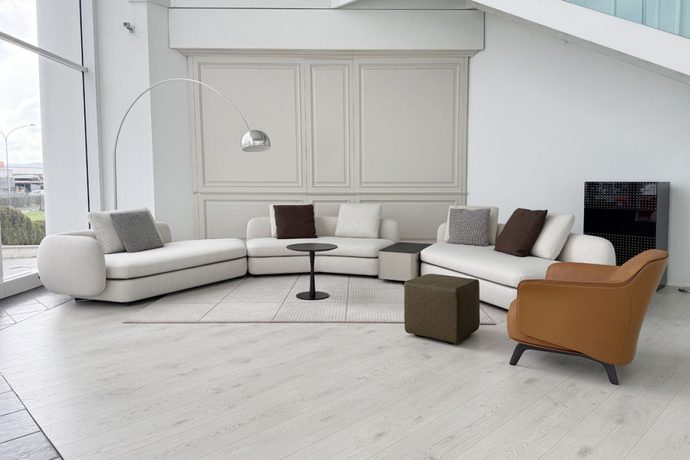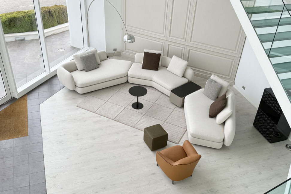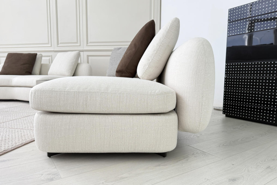 Il divano Saint-Germain firmato da Jean-Marie Massaud per Poliform è un'icona di eleganza e stile. Nella sua versione color sabbia, unisce calore a linee generose, adattandosi perfettamente a ogni ambiente contemporaneo.