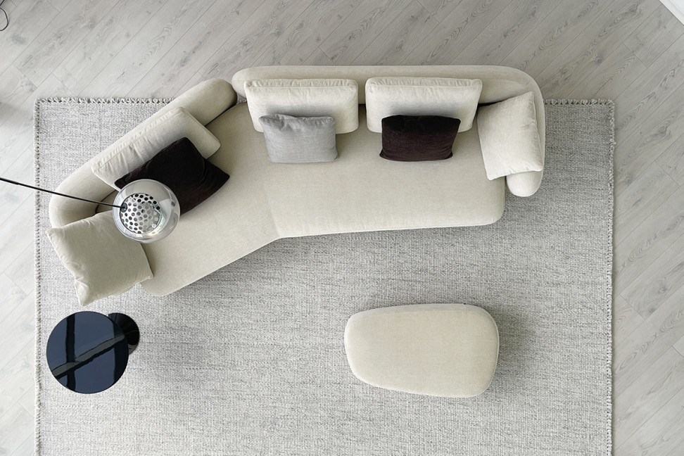 Il divano Saint-Germain Boomerang disegnato da Jean-Marie Massaud per Poliform è ispirato dagli anni '70 e trasforma qualsiasi spazio in un ambiente caldo e familiare.