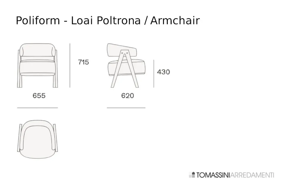 La poltrona Loai di Stefano Belingardi Clusoni in collaborazione con Poliform, rappresenta un perfetto equilibrio tra design contemporaneo e comfort sofisticato. Caratterizzata da uno schienale avvolgente, che accoglie il corpo offrendo un sostegno ergonomico e accogliente, questa poltrona si distingue per la sua struttura ispirata alla forma del compasso. Tale dettaglio non è solo un omaggio alla precisione e alla geometria, ma conferisce all’insieme un’estetica slanciata e dinamica, valorizzata da linee pulite e da un attento studio delle proporzioni.