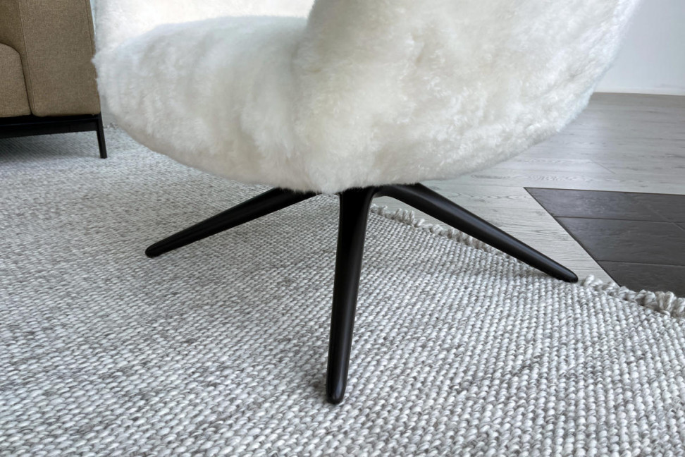 La poltrona Mad Chair in offerta expo nel nostro showroom è caratterizzata da un rivestimento in cashmere bianco, con una struttura verniciata in nichel marrone opaco.