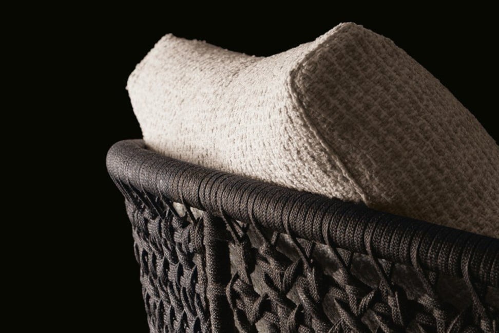 La poltrona outdoor Soori Day sembra quasi galleggiare, con la sua base leggera che solleva la seduta da terra e lo schienale intrecciato che disegna un profilo fluido, aperto verso l’esterno. I volumi generosi dei cuscini, morbidi ma ben definiti, invitano a lasciarsi andare, mentre il contrasto tra le finiture opache del metallo e la texture materica dell’intreccio crea un gioco visivo sofisticato. È una poltrona che arreda lo spazio prima ancora di essere utilizzata, capace di trasformare anche un angolo del cortile o della terrazza in un piccolo salotto personale.