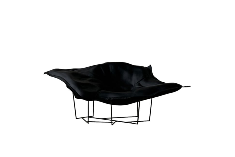 Rivestimento in pelle nera non sfoderabile, base in metallo vernociato brown nickel opaco.
