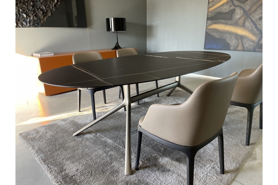 Riprendendo lo stile elegante e sofisticato che contraddistingue l’intera linea, il designer ha realizzato un elemento d’arredo in grado di catturare l’attenzione grazie alla leggerezza della struttura in metallo e alla modernità della linea. L’imponente piano, inoltre, contribuisce a valorizzare il tavolo, rendendolo protagonista indiscusso della zona giorno.
