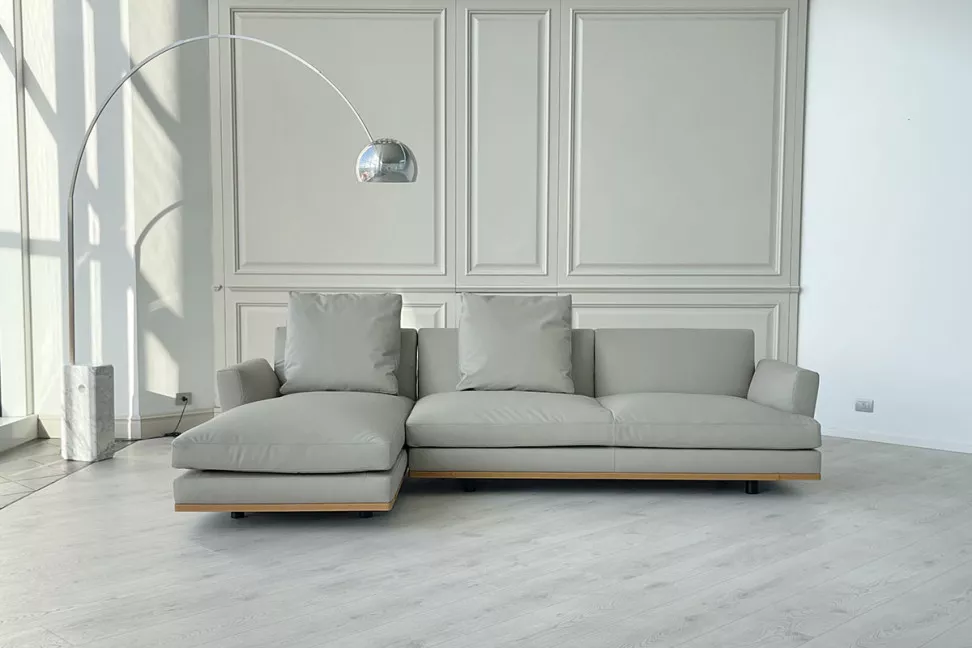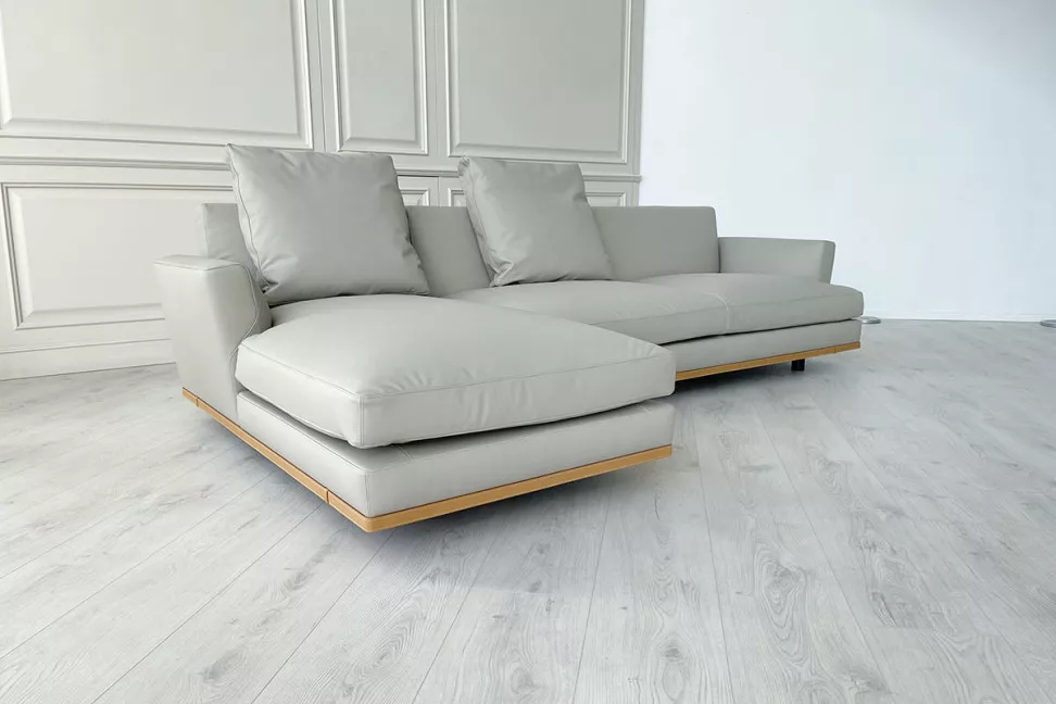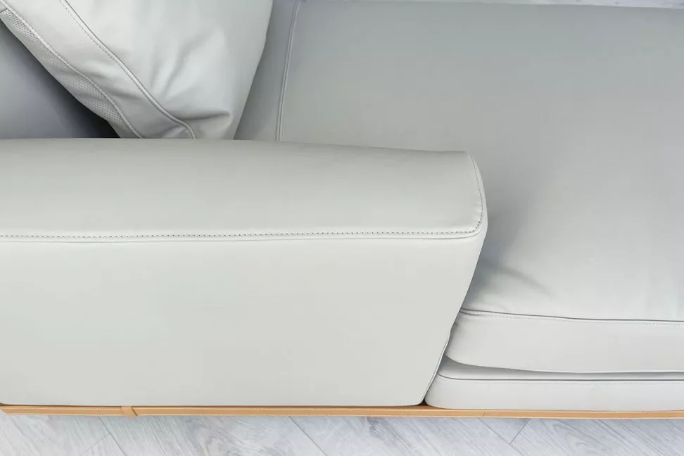 Il divano Come Together in offerta expo nel nostro showroom è caratterizzato da un rivestimento in pelle color grigio tortora e un elegante fascia ornamentale in cuoio color cognac. I piedini sono cilindrici e in allumino anodizzato nero. Sono inclusi n.3 cuscini ornamentali per aumentare il comfort.