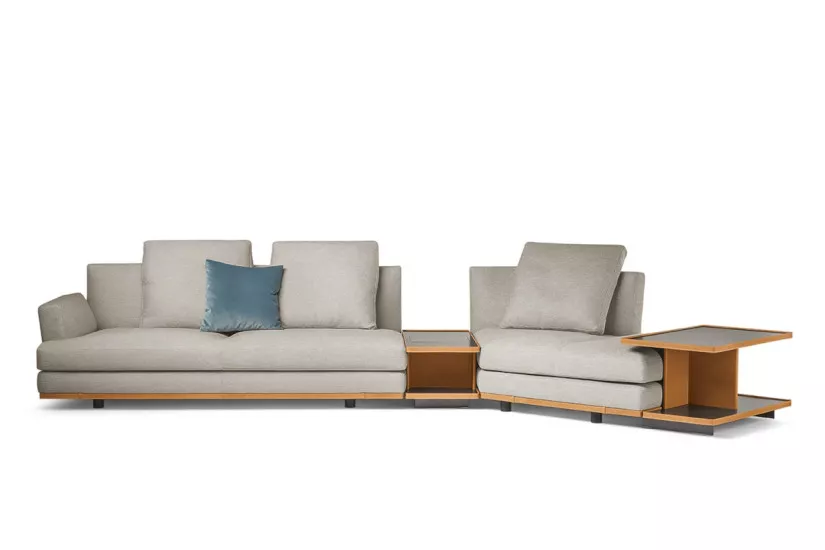 Questo divano, disegnato da Ludovica e Roberto Palomba, è composto da pochi moduli che, combinati tra loro, offrono infinite possibilità compositive. Come Together è un divano dallo stile estremamente moderno caratterizzato da forme contenute, che offrono un luogo ideale per la conversazione. Per esaltare le sue forme, Poltrona Frau offre la possibilità di inserire una fascia in cuoio che corre lungo tutto il basamento. La collezione Come Together include anche una serie di elementi accessori, contenitori e tavolini utili per appoggiare oggetti, libri o bicchieri.