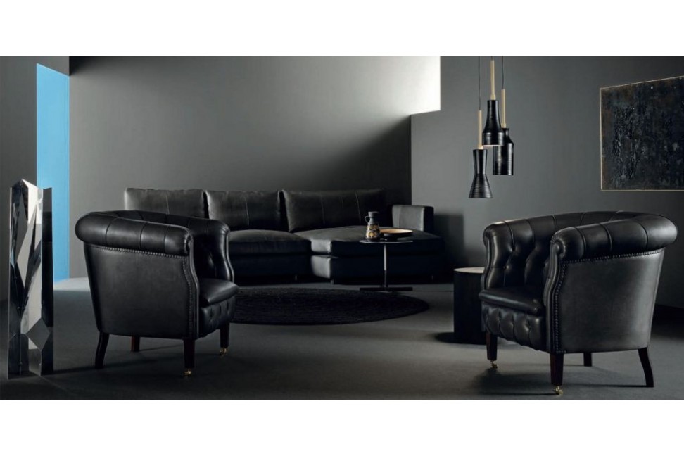 Poltrona Frau, leader nel design made in Italy, realizza l'intera collezione del divano Fumoir con ruote anteriori in ottone. La collezione è caratterizzata anche dalle particolari cuciture a losanghe dello schienale, espressione della maestria degli artigiani di Poltrona Frau.