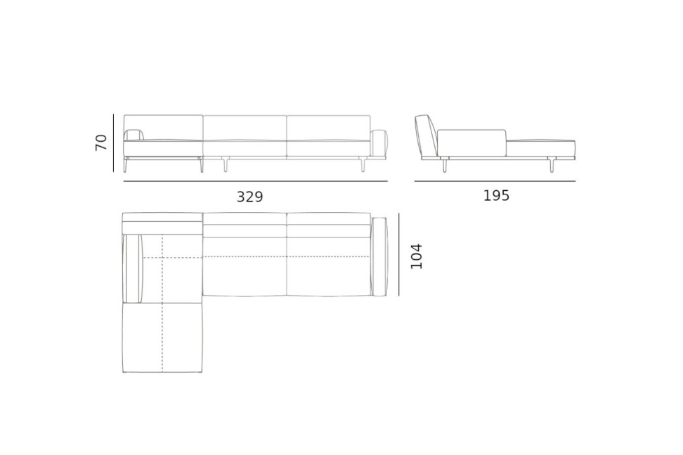 - n.1 divano 2 posti con bracciolo terminale basso DX;