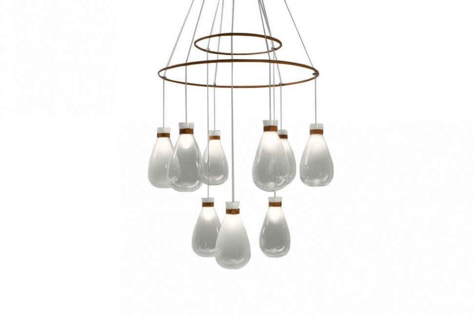 Disponibili sia in versione singola che a grappolo, così come in composizioni lineari e a lampadario, i moduli di Soffi prendono forma dal pregiato vetro soffiato e vengono completati da un bracciale in cuoio color cammello o talpa. Il cuoio torna a fare da co-protagonista nelle composizioni Chandelier, dove riveste gli anelli metallici che definiscono la struttura, regalando a questa particolare composizione di Soffi tutta la qualità e l'eleganza tipica di Poltrona Frau.