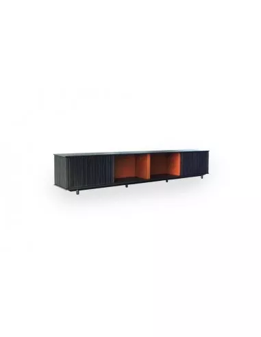 Essenzialità formale e ricercatezza di materiali si fondono dando vita a complementi d’arredo sofisticati e moderni allo stesso tempo, ideali per donare un tocco distintivo al proprio ambiente abitativo. Le peculiari griglie, realizzate in legno massello di rovere, conferiscono carattere alla madia, il cui movimento rotatorio permette di aprire e chiudere i vari listelli creando movimento e un affascinante effetto vedo-non-vedo che cela e svela il contenuto del mobile.