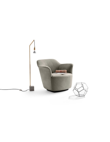 La poltrona Aida riecheggia le forme pulite e la combinazione di tessuto e pelle tipica del periodo degli anni '50. La poltrona Aida è realizzata in legno di faggio stagionato, con molle biconiche in acciaio legate a mano e montate su cinghie di juta. Poltrona Frau impreziosisce il rivestimento della poltrona Aida con un bordo in pelle o gros-grain. La poltrona Aida è disponibile in versione fissa o girevole. La sua base è realizzata in fibra di legno verniciata nera.