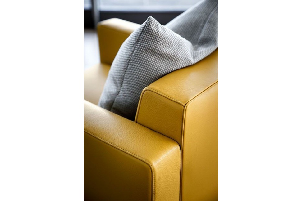 Nonostante le sue dimensioni contenute e il design compatto, questa poltrona non tralascia il comfort di una seduta comunque ampia ed accogliente. Come in ogni suo prodotto, Poltrona Frau studia con cura ogni minimo dettaglio, come le cuciture, i rivestimenti e le finiture dei piedini, proposti qui in faggio tinto wengé. Questa poltrona prevede un rivestimento in Pelle Frau®, in tessuto oppure nella combinazione di pelle, per base e braccioli, e cavallino per il cuscino di seduta e schienale. La poltrona Linea A si adatta ad ogni soluzione di arredo e può essere abbinata ai divani a due e tre sedute della medesima collezione.