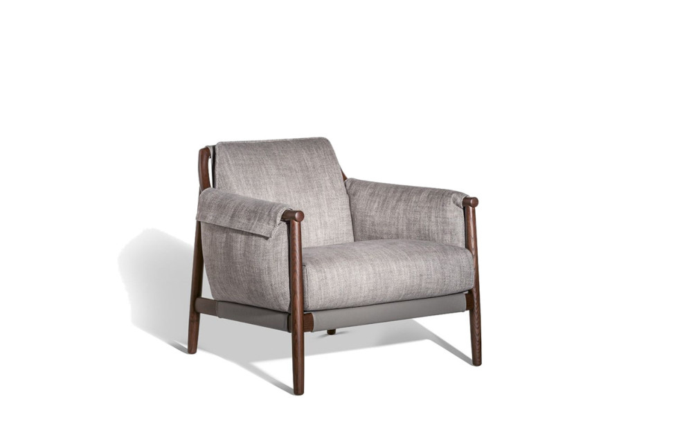 La linea sobria ma accattivante già esplorata con il letto torna in grande stile, portando ad una poltrona capace di arricchire qualsiasi salotto. L'elegante struttura in frassino massello e Pelle Frau® sorregge la confortevole imbottitura, proposta in una vasta gamma di finiture diverse al fine di riuscire ad accontentare qualunque gusto.