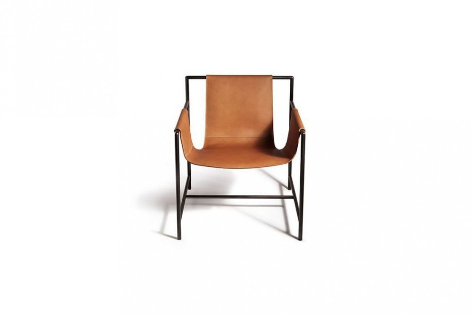 Caratterizzata da linee minimali e pure ma allo stesso tempo degne di un'architettura, questa poltrona presenta una struttura in tubolare di acciaio in finitura color canna di fucile; la scocca sembra galleggiare nello spazio ed è costituita da una superficie continua in acciaio, rivestita in cuoio Saddle Extra e impreziosita da cuciture a contrasto.