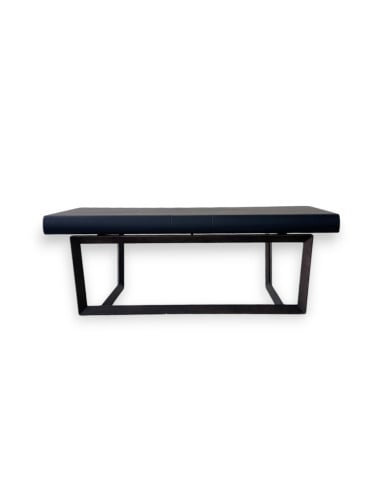 Piano rivestito in pelle nera e base in legno di frassino tinto moka, n.2 cassetti integrati nel piano.