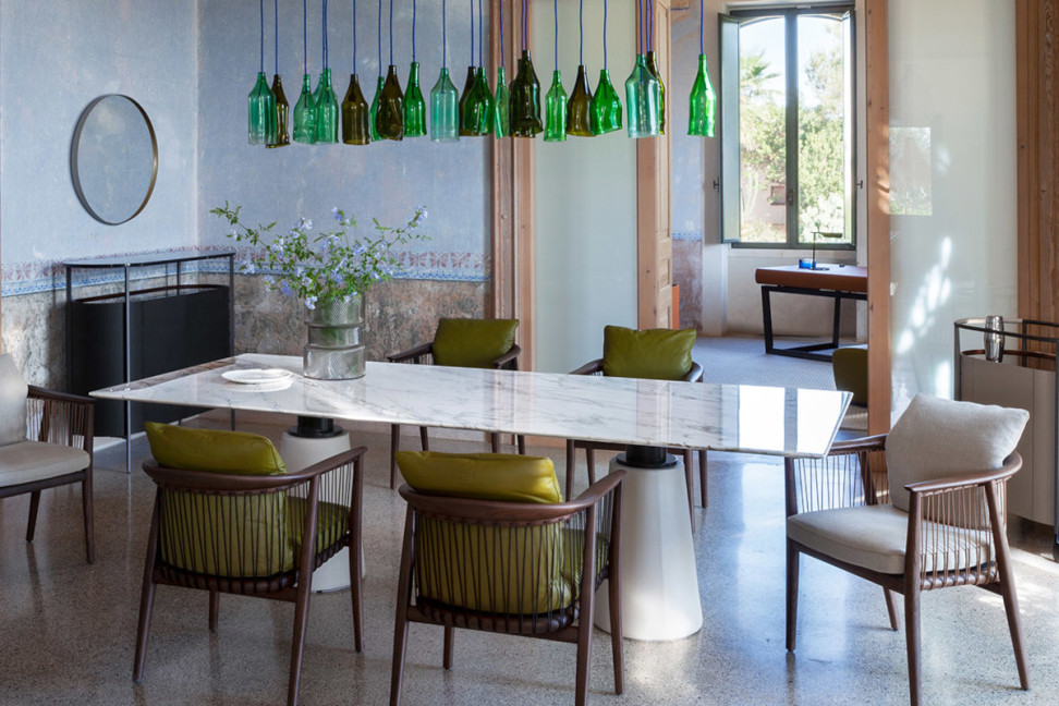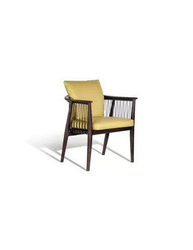 L'obiettivo era aggiornare una linea classica secondo i canoni del gusto contemporaneo, senza trascurare il comfort. Il risultato è questa bellissima sedia, resa leggera dall'intreccio di cordoncini di cuoio che le donano uno stile originale ed immediatamente riconoscibile.